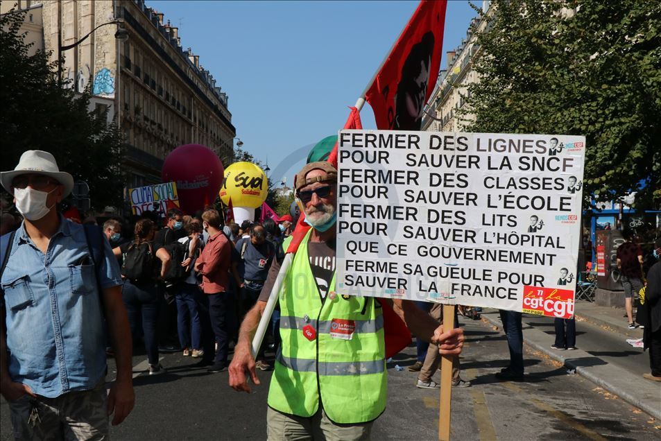 Fransa'da, Cumhurbaşkanı Emmanuel Macron'un yönetimi ve hükümetin ekonomik ve sosyal politikalarına karşı gösteriler düzenlendi. Genel İş Konfederasyonu (CGT) gibi çok sayıda sendikanın çağrısıyla başkent Paris'in Republique Meydanı'nda toplanan yüzlerce eylemci Nation Meydanı'na kadar yürüdü.