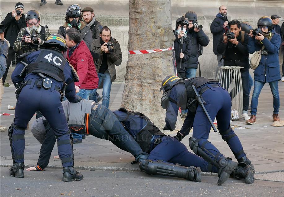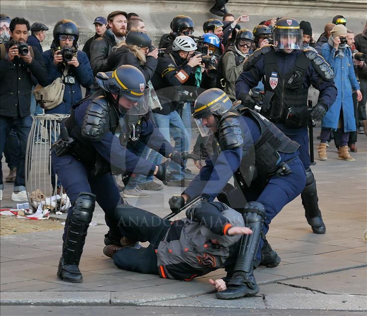 Fransa'da polisin bir gence copla cinsel saldırıda bulunması sonrası başlayan polis şiddeti karşıtı protestolar devam ediyor. Paris'teki Republique meydanında toplanan yaklaşık 2300 kişi polis şiddetini protesto etti. Yaklaşık 2 saat süren gösterinin sonlarına doğru yüz kişilik bir grubun polis barikatını aşmaya çalıştığı görüldü. Polis, çatışmaya giren gruba göz yaşartıcı bomba ile karşılık verdi. Çatışmada polis ve göstericilerden yaralananlar oldu. ( Mustafa Yalçın - Anadolu Ajansı )Mustafa Yalçın