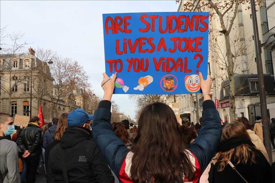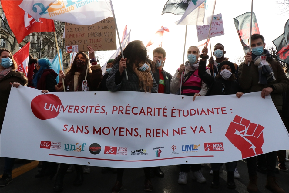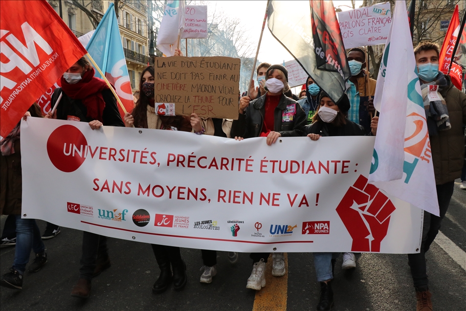 Fransa'da gençlik kuruluşları ve öğrenci sendikalarının çağrısıyla hükümet karşıtı gösteri düzenledi. Başkent Paris'teki Georges Bernanos Caddesi'nde toplanan binlerce öğrenci, Yüksek Öğrenim ve Araştırma Bakanlığının önüne yürüdü.