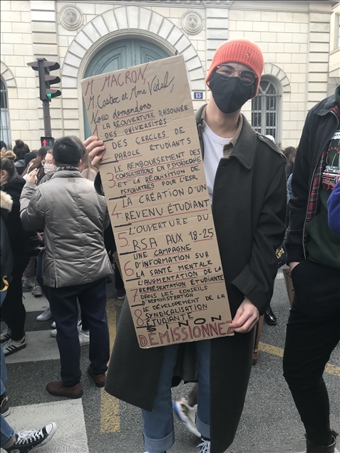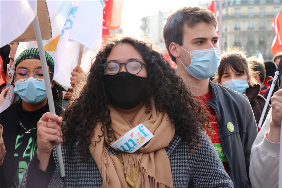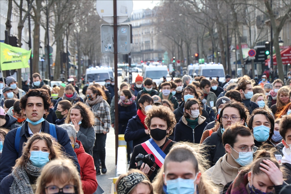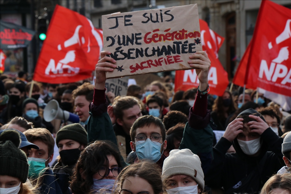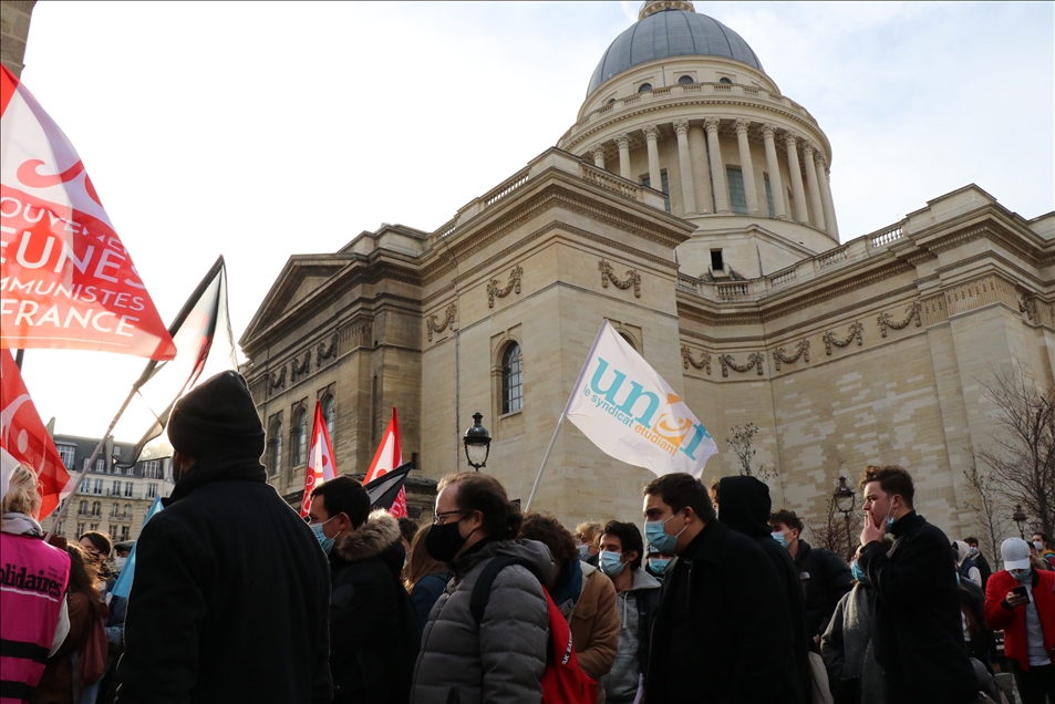 Fransa'da gençlik kuruluşları ve öğrenci sendikalarının çağrısıyla hükümet karşıtı gösteri düzenledi. Fransa Öğrenci Federasyonları Birliği (UNEF) ve diğer gençlik kuruluşları, yaşam ve eğitim koşullarını savunma, yeni tip koronavirüs (Kovid-19) salgını nedeniyle eğitim kurumlarının kapalı olması ve üniversitelerin açılış tarihlerinin açıklanmamasını protesto amacıyla öğrencilere gösteri çağrısı yaptı. Başkent Paris'teki Georges Bernanos Caddesi'nde toplanan binlerce öğrenci, Yüksek Öğrenim ve Araştırma Bakanlığının önüne yürüdü. ( Alaattin Doğru - Anadolu Ajansı )Alaattin Doğru