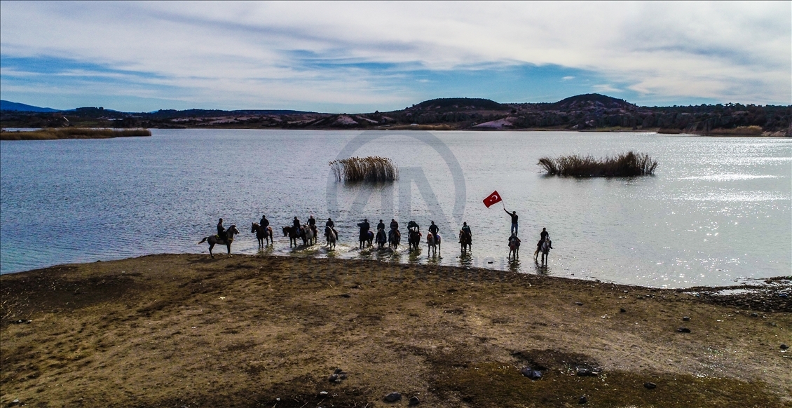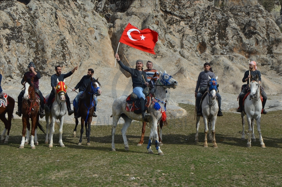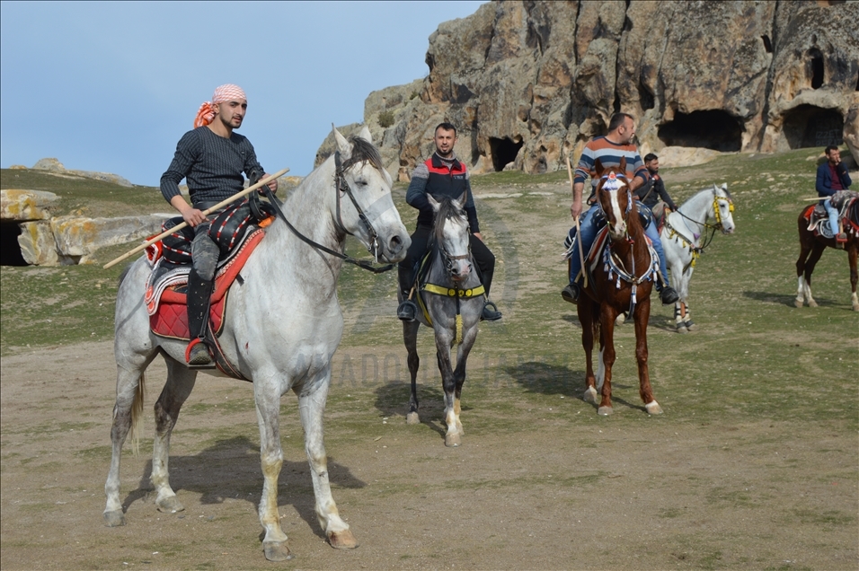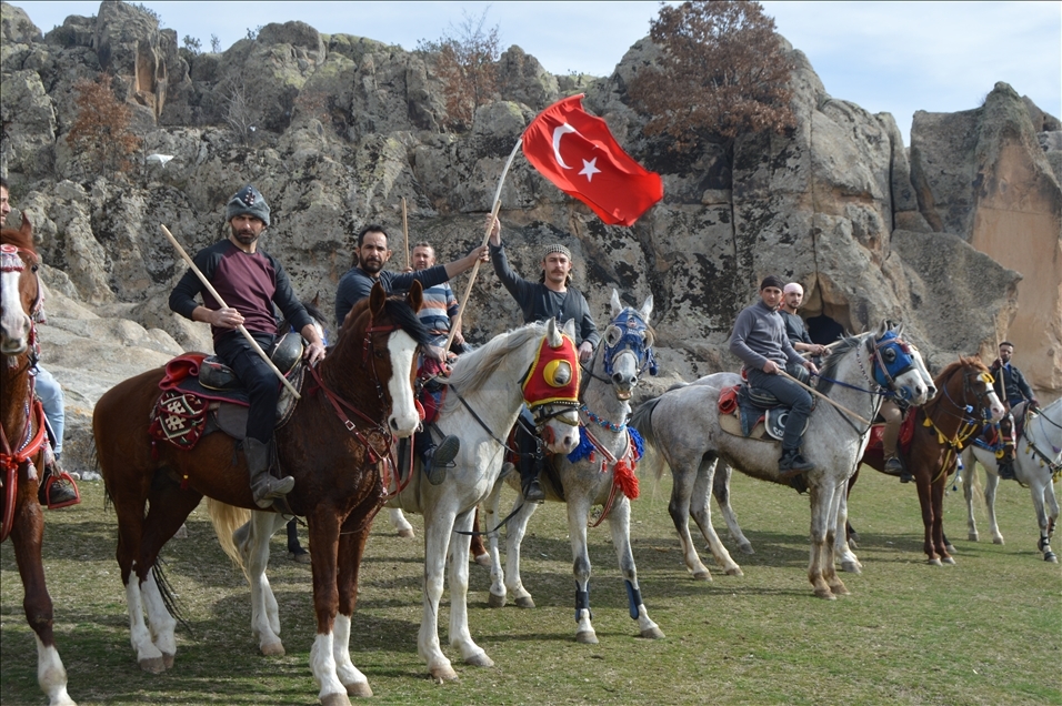 Afyonkarahisar'ın İhsaniye ilçesinde iki yıl önce kurulan "Döğer Boyu Geleneksel Atlı Spor Kulübü" üyeleri, tarihi Frig Vadisi'ndeki kaya yerleşimleri arasında cirit ve okçuluk, Emre Gölü etrafında da atlı safari ve at yarışı etkinlikleri organize ediyor. ( Arif Yavuz - Anadolu Ajansı )Arif Yavuz