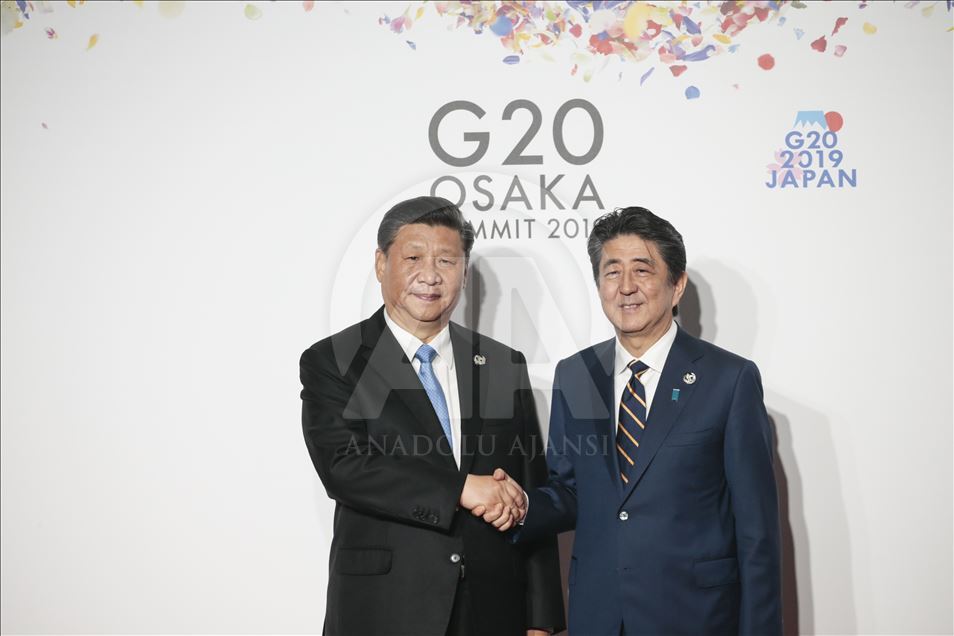 G20 Osaka Liderler Zirvesi'nin resmi açılış töreni yapıldı. Törene katılan Çin Devlet Başkanı Şi Cinping (solda), Japonya Başbakanı Şinzo Abe tarafından karşılandı. ( Metin Aktas - Anadolu Ajansı )Metin Aktas