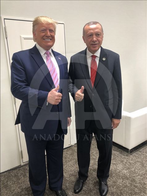 Japonya’nın ev sahipliğinde Osaka’da iki gün sürecek G20 Liderler Zirvesi, INTEX Osaka Fuar Merkezi’nde başladı. Liderler, “Küresel Ekonomi, Ticaret ve Yatırımlar” temasıyla düzenlenen zirvenin ilk oturumuna katıldı. Oturuma Cumhurbaşkanı Recep Tayyip Erdoğan, ABD Başkanı Donald Trump ve İngiltere Başbakanı Theresa May de katıldı. ( Cumhurbaşkanlığı / Cem Öksüz - Anadolu Ajansı )Cumhurbaşkanlığı / Cem Öksüz