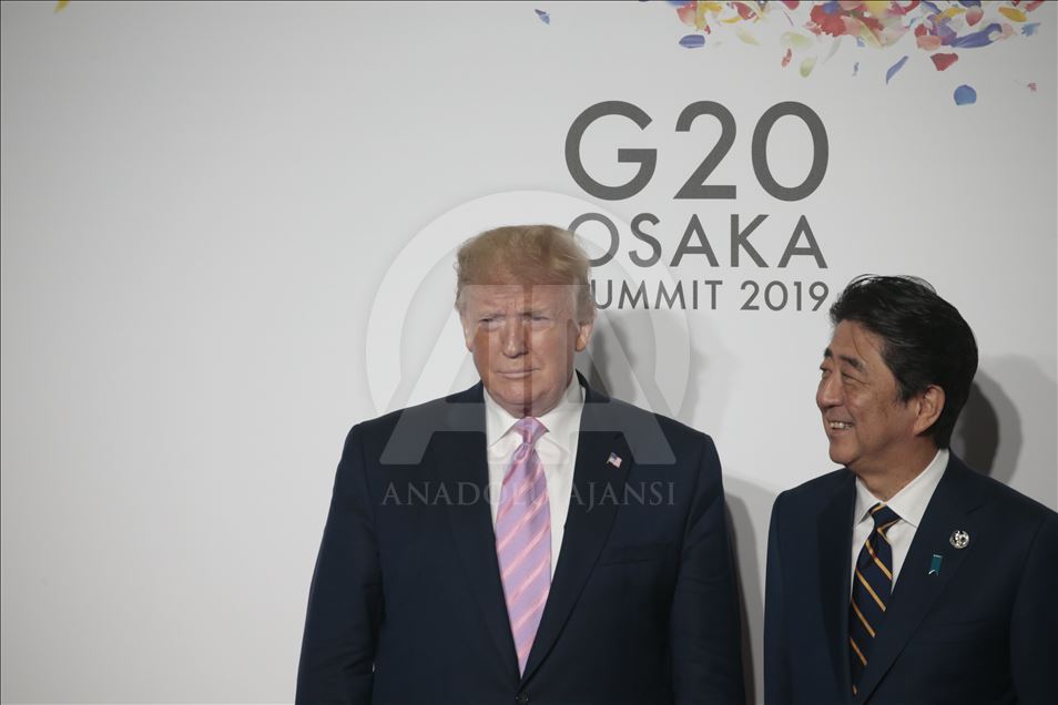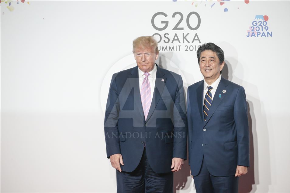 G20 Osaka Liderler Zirvesi'nin resmi açılış töreni yapıldı. Törene katılan ABD Başkanı Donald Trump (solda), Japonya Başbakanı Şinzo Abe tarafından karşılandı. ( Metin Aktas - Anadolu Ajansı )Metin Aktas