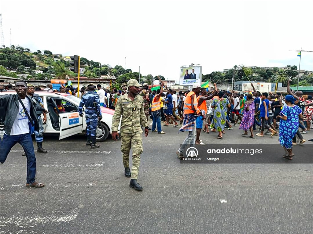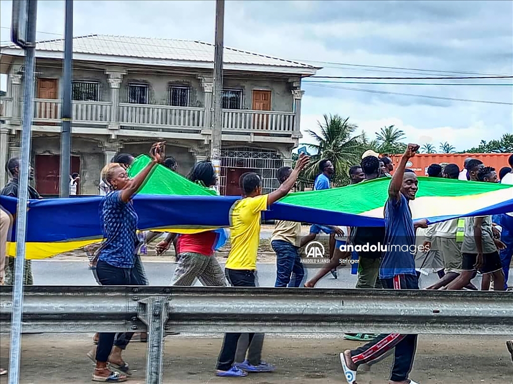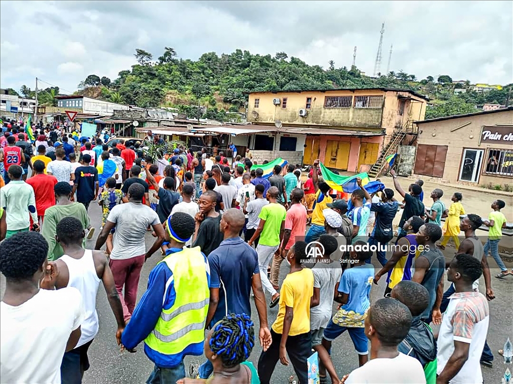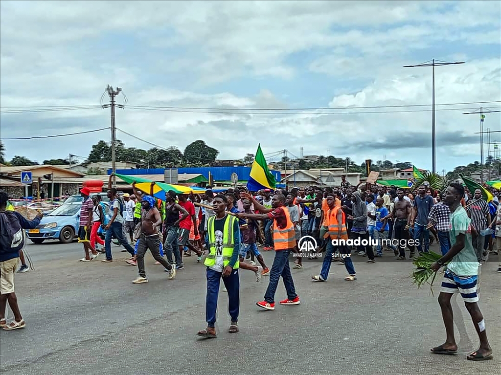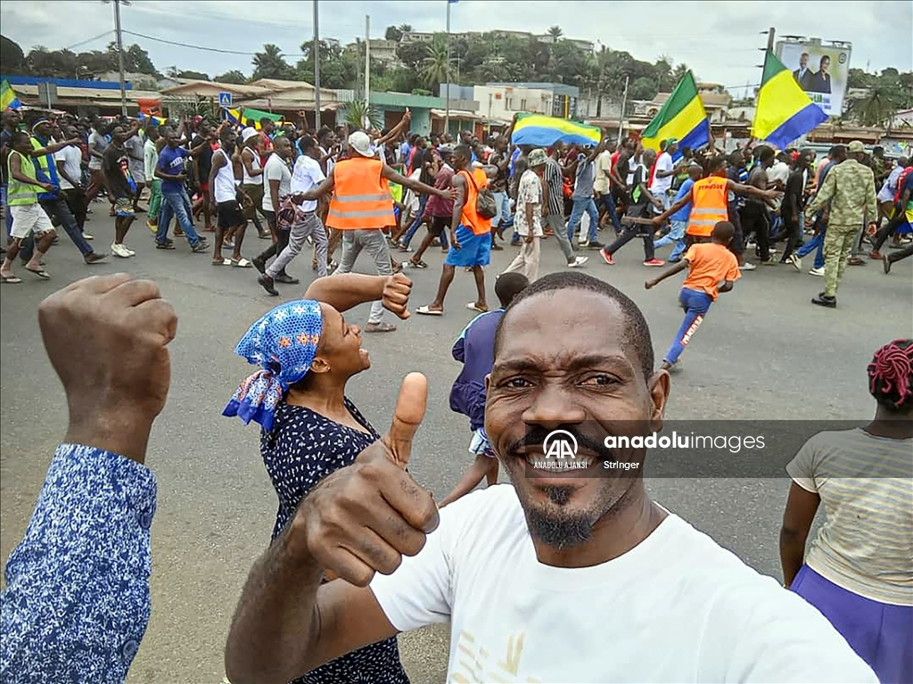 Gabon’da cumhurbaşkanı seçim sonuçlarının ilanından sonra ulusal televizyon binasına giren bir grup asker, yönetimi ele geçirdiklerini açıkladı. Askeri yönetimi destekleyen bir grup, başkent Libervil sokaklarına çıktı. ( Stringer - Anadolu Ajansı )Stringer