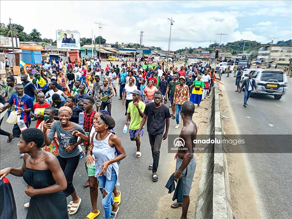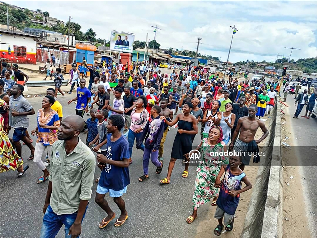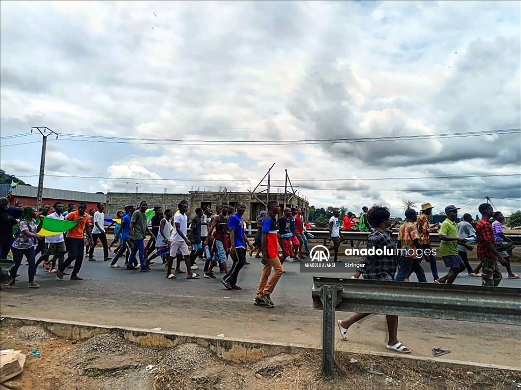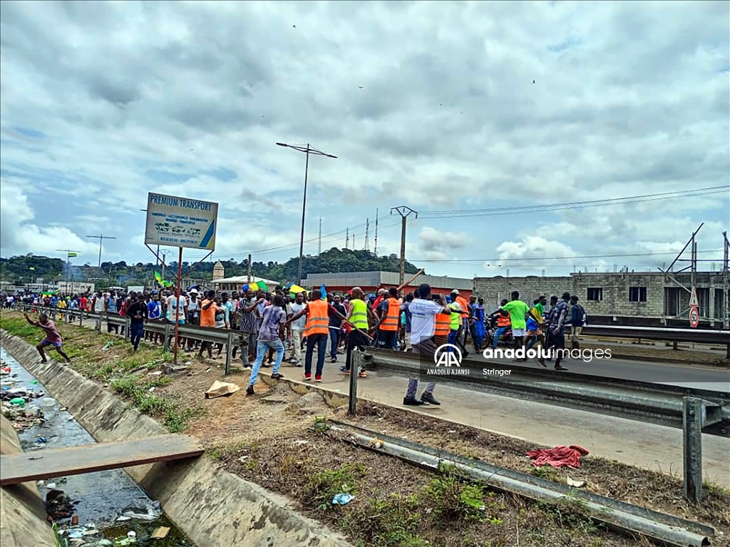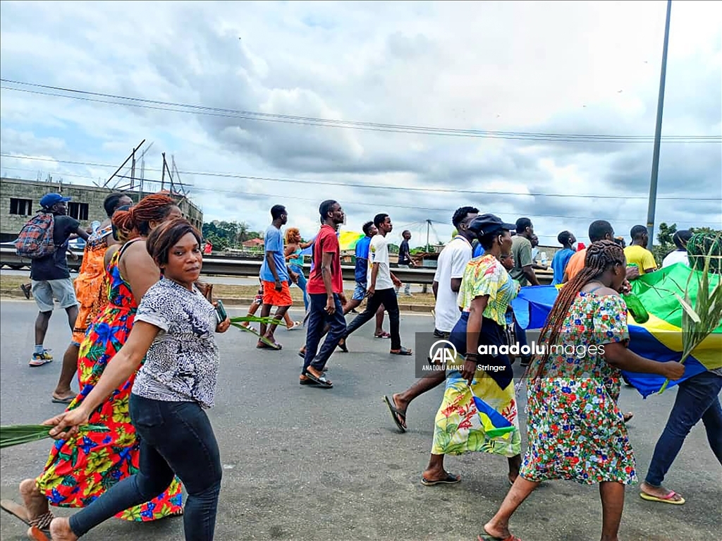 Gabon’da cumhurbaşkanı seçim sonuçlarının ilanından sonra ulusal televizyon binasına giren bir grup asker, yönetimi ele geçirdiklerini açıkladı. Askeri yönetimi destekleyen bir grup, başkent Libervil sokaklarına çıktı. ( Stringer - Anadolu Ajansı )Stringer