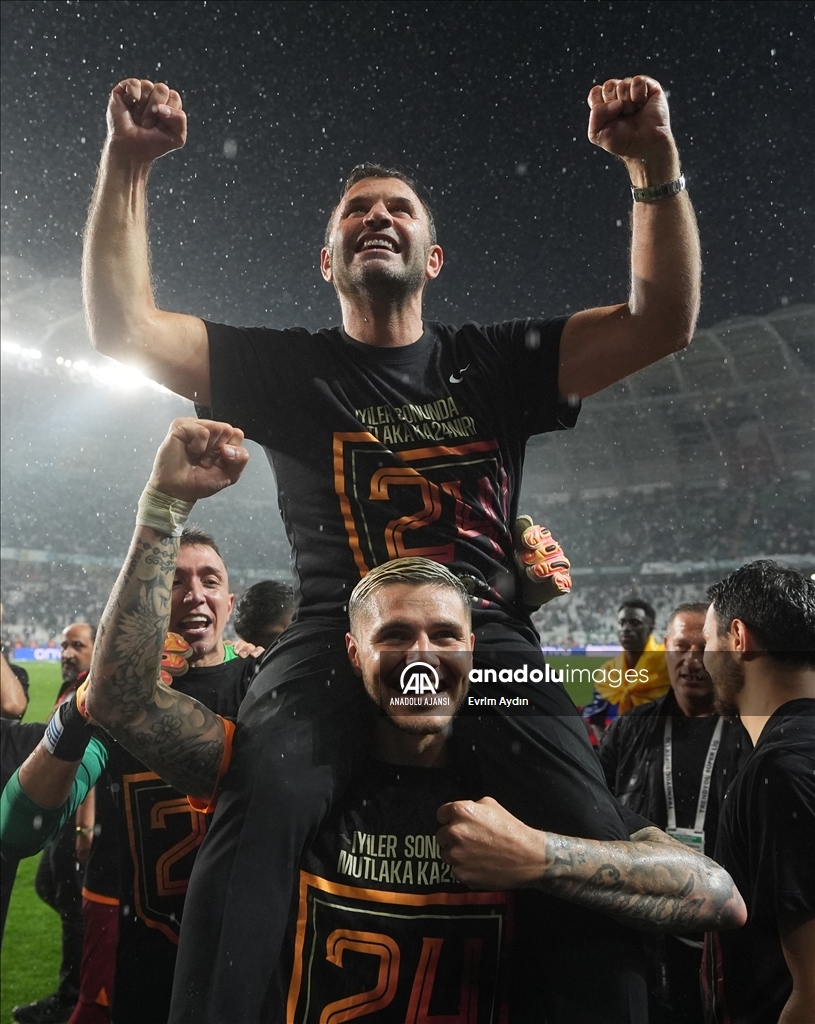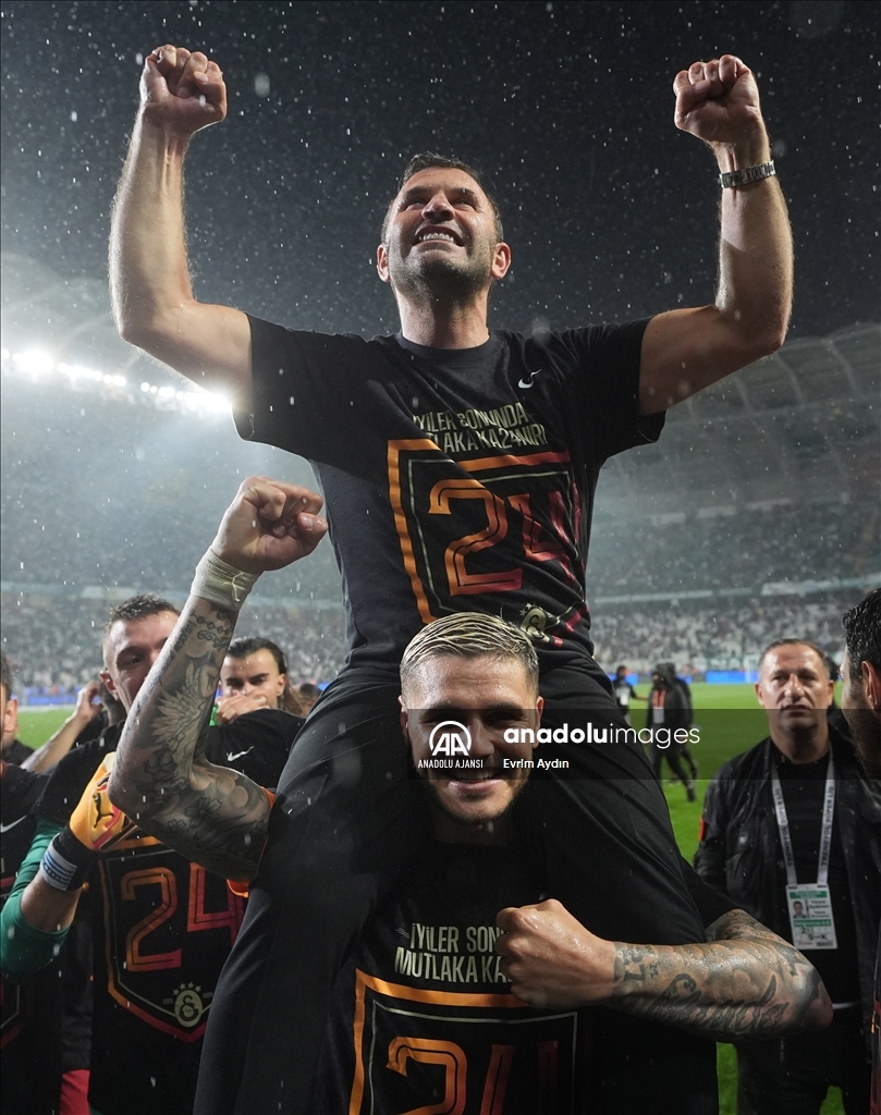 Süper Lig'in son haftasında deplasmanda TÜMOSAN Konyaspor'u mağlup eden Galatasaray, 2023-2024 sezonu şampiyonu oldu. Galatasaray takımı oyuncuları ve teknik heyet sevinç yaşadı. ( Evrim Aydın - Anadolu Ajansı )Evrim Aydın