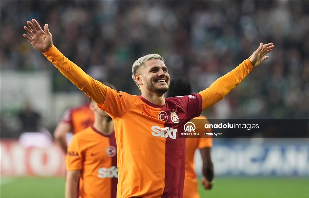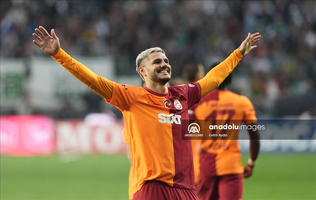 Trendyol Süper Ligi 38. haftasında Tümosan Konyaspor ile Galatasaray takımları Medaş Konya Büyükşehir Stadyumu’nda karşılaştı. Bir pozisyonda Galatasaray’dan Mauro İcardi attığı gol sonrası sevinç yaşadı. ( Mustafa Çiftçi - Anadolu Ajansı )Mustafa Çiftçi