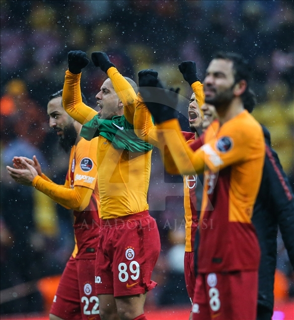 Galatasaray, Spor Toto Süper Lig'in 23. haftasında Akhisarspor ile Türk Telekom Stadı'nda karşılaştı. Karşılaşmayı kazanan Galatasaraylı oyuncular sevinç yaşadı.