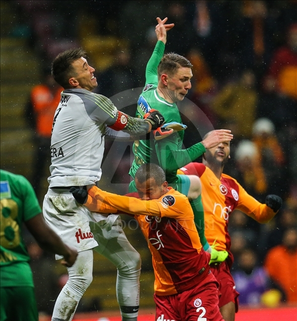 Galatasaray, Spor Toto Süper Lig'in 23. haftasında Akhisarspor ile Türk Telekom Stadı'nda karşılaştı. Galatasaraylı oyuncular Fernando Muslera (solda) ve Mariano (2) Akhisarlı futbolcu Rajko Rotman (ortada) ile bir pozisyonda mücadele etti.