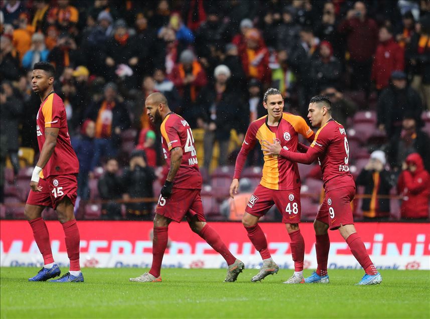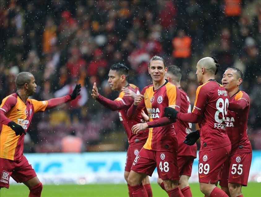 Galatasaray, Süper Lig'in 17. haftasında Antalyaspor ile karşılaştı. Galatasaraylı futbolcular Radamel Falcao'nun (9) attığı gol sonrası sevinç yaşadı. ( İsa Terli - Anadolu Ajansı )İsa Terli