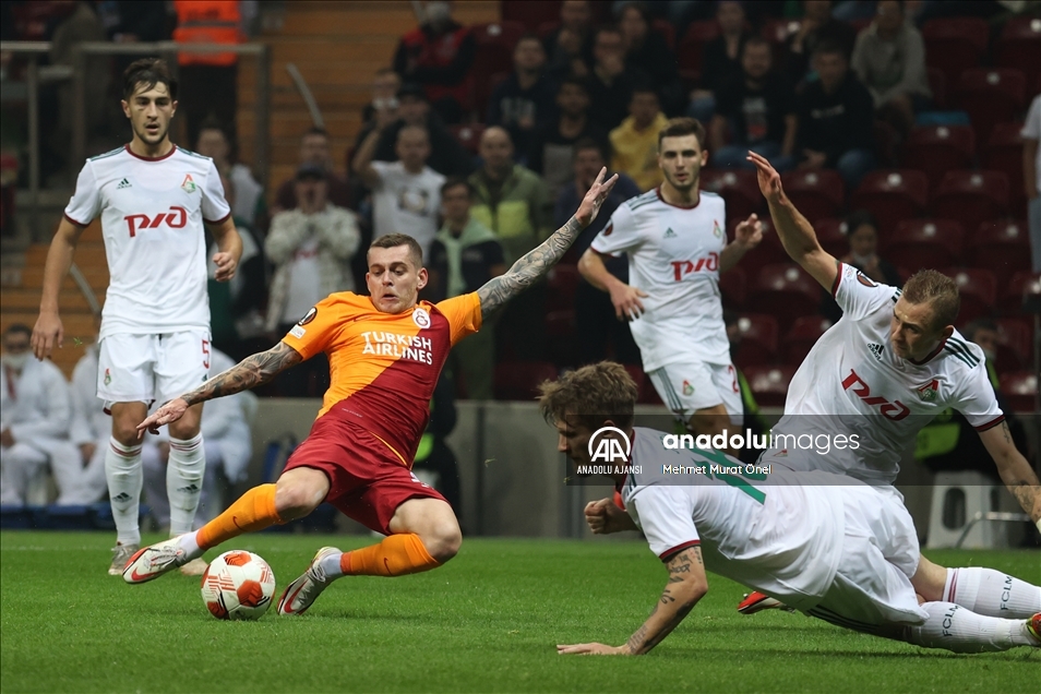 UEFA Avrupa Ligi E Grubu 4. haftasında Galatasaray ile Lokomotiv Moskova Nef Stadı'nda karşılaştı. Bir pozisyonda Galatasaraylı futbolcu Olimpiu Morutan (sol 2) ile Lokomotiv Moskova oyuncusu Alexis Beka Beka (solda) mücadele etti. ( Mehmet Murat Önel - Anadolu Ajansı )Mehmet Murat Önel