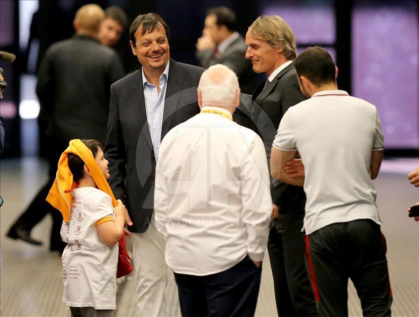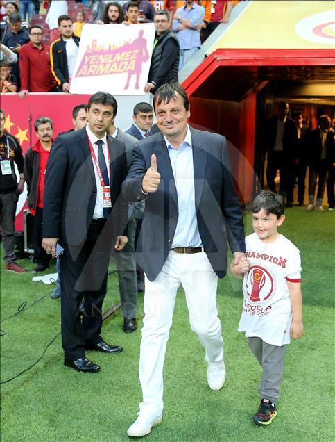 Spor Toto Süper Lig'de Galatasaray ile Beşiktaş takımları Türk Telekom Arena'da karşı karşıya geldi. Basketbolda ULEB Avrupa Kupası'nı kazanan Galatasaray Odeabank takımı ve idari kadrosu maç öncesinde taraftarları selamladı. ( Berk Özkan - Anadolu Ajansı )Berk Özkan