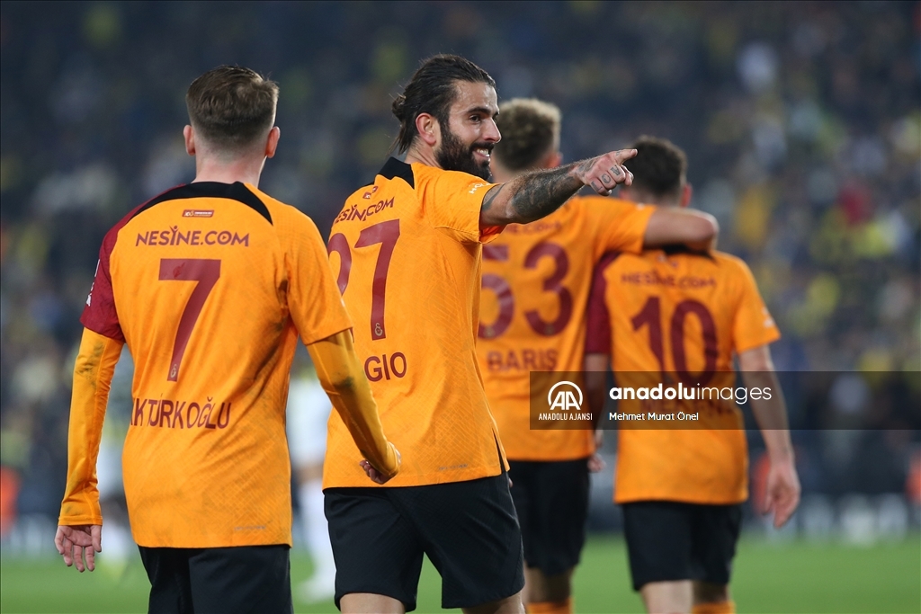 Spor Toto Süper Lig’in 18. haftasında Fenerbahçe ile Galatasaray Ülker Stadı'nda karşılaştı. Galatasaray oyuncusu Segio Oliveira (sol 2) attığı gol sonrası takım arkadaşlarıyla sevinç yaşadı. ( Mehmet Murat Önel - Anadolu Ajansı )Mehmet Murat Önel