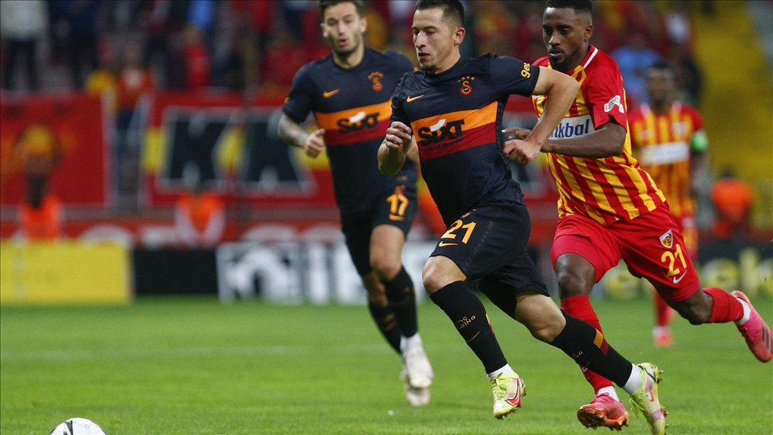 Süper Lig'de Yukatel Kayserispor, Galatasaray ile karşılaştı. Bir pozisyonda Galatasaraylı futbolcu Kerem Aktürkoğlu (sol 2) rakibi ile mücadele etti. ( Sercan Küçükşahin - Anadolu Ajansı )Sercan Küçükşahin