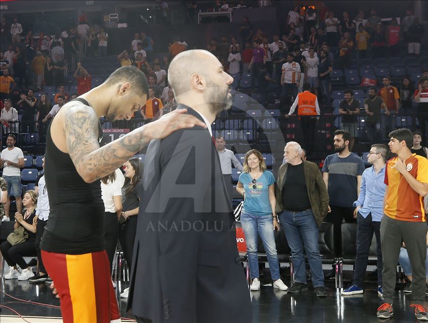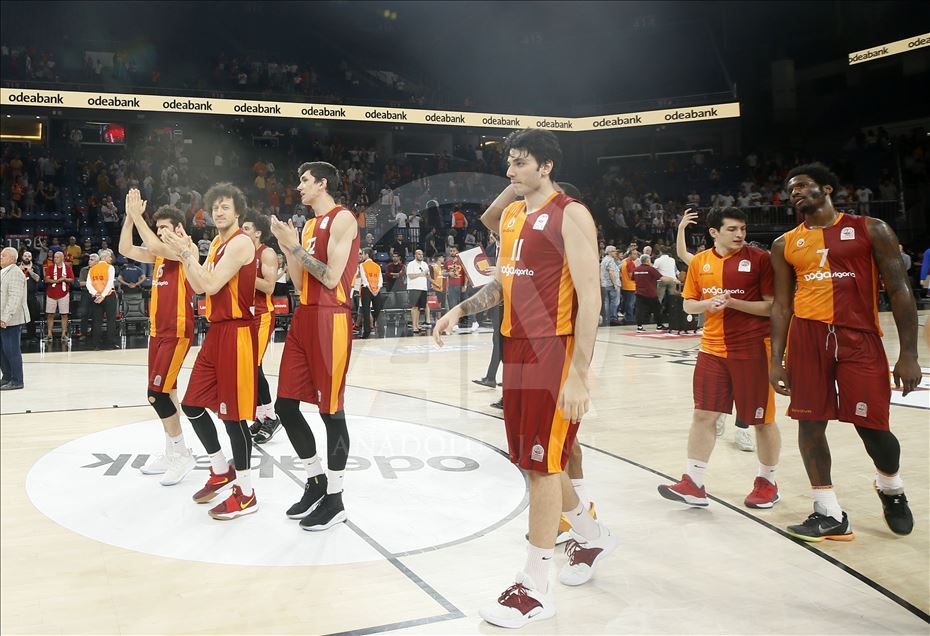 Tahincioğlu Basketbol Süper Ligi play-off yarı final serisi üçüncü maçında Galatasaray Doğa Sigorta ile Anadolu Efes, Sinan Erdem Spor Salonu’nda karşılaştı. Anadolu Efes'e yenilerek finale çıkma hakkını kaybeden Galatasaray Doğa Sigortalı basketbolcular, karşılaşma sonrası taraftarı selamladı. ( Erhan Elaldı - Anadolu Ajansı )Erhan Elaldı
