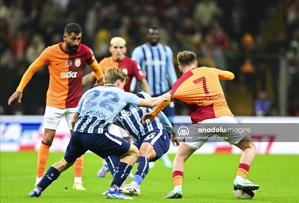 Trendyol Süper Lig'in 15. haftasında Galatasaray ile Yukatel Adana Demirspor takımları RAMS Park'ta karşılaştı. Galatasaraylı futbolcu Kerem Aktürkoğlu (7), rakipleri ile mücadele etti. ( Abdulhamid Hoşbaş - Anadolu Ajansı )Abdulhamid Hoşbaş