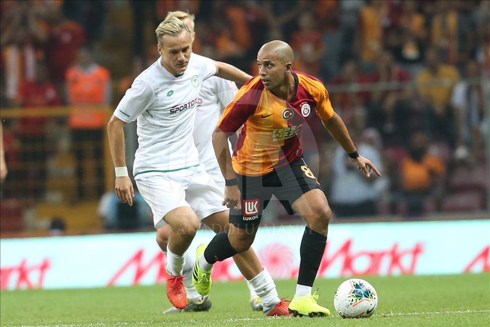 Galatasaray, Süper Lig'in 2. haftasında Konyaspor ile Türk Telekom Stadı'nda karşılaştı. Galatasaraylı futbolcu Sofiane Feghouli (89) ile Konyasporlu oyuncu Ferhat Öztorun (87), bir pozisyonda mücadele etti. ( Arif Hüdaverdi Yaman - Anadolu Ajansı )Arif Hüdaverdi Yaman