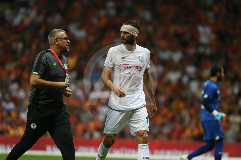 Galatasaray, Süper Lig'in 2. haftasında Konyaspor ile Türk Telekom Stadı'nda karşılaştı. Kafasına darbe alan Konyasporlu oyuncu Marin Anicic (14), bir süre oyun dışında kaldıktan sonra maça devam etti. ( İslam Yakut - Anadolu Ajansı )İslam Yakut