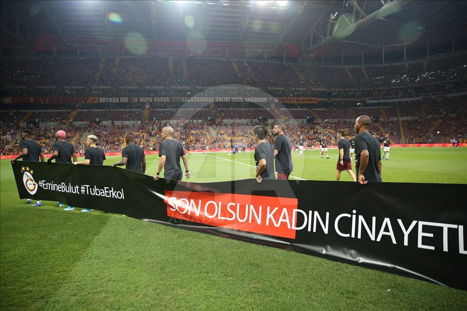 Galatasaray, Süper Lig'in 2. haftasında Konyaspor ile Türk Telekom Stadı'nda karşılaştı. Galatasaraylı futbolcular ısınma için sahaya ""#EmineBulut #TubaErkol son olsun, kadın cinayetleri son bulsun!" yazılı pankartla çıktılar. ( Arif Hüdaverdi Yaman - Anadolu Ajansı )Arif Hüdaverdi Yaman