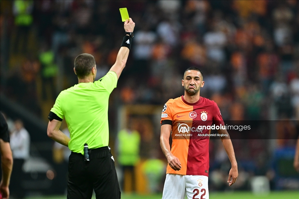 UEFA Şampiyonlar Ligi A Grubu'nda Galatasaray ile Danimarka'nın Kopenhag takımları RAMS Park'ta karşılaştı. Bir pozisyonfa Galatasaraylı futbolcu Ziyech sarı kart gördü. ( Abdulhamid Hoşbaş - Anadolu Ajansı )Abdulhamid Hoşbaş