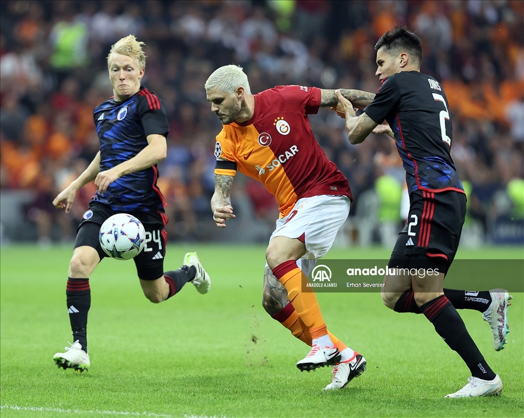 UEFA Şampiyonlar Ligi A Grubu'nda Galatasaray ile Danimarka'nın Kopenhag takımları RAMS Park'ta karşılaştı. Galatasaray oyuncusu Mauro Icardi (ortada) ile Kopenhag oyuncuları Birger Meling (solda) ve Kevin Diks (sağda) mücadele etti. ( Erhan Sevenler - Anadolu Ajansı )Erhan Sevenler