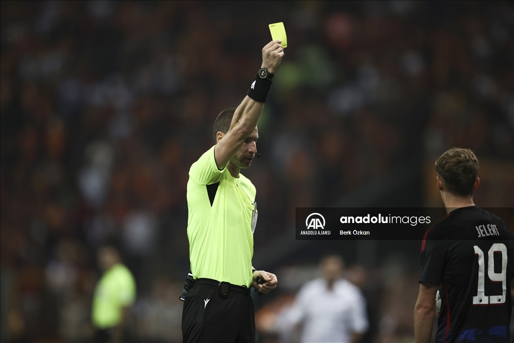 UEFA Şampiyonlar Ligi A Grubu'nda Galatasaray ile Danimarka'nın Kopenhag takımları RAMS Park'ta karşılaştı. Hakem Georgi Kabakov, bir pozisyonun ardından Kopanhaglı oyuncu Elias Jelert'a (19) sarı kart gösterdi. ( Berk Özkan - Anadolu Ajansı )Berk Özkan
