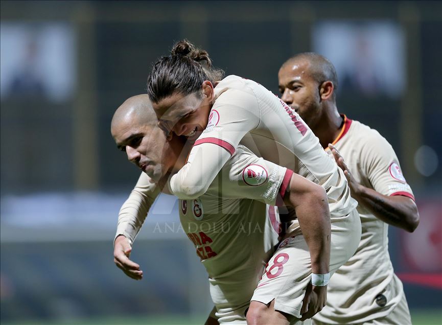 Tuzlaspor, Ziraat Türkiye Kupası 5. tur rövanş maçında Galatasaray ile Esenyurt Necmi Kadıoğlu Stadı’nda karşılaştı. Galatasaraylı oyuncular Sofiane Feghouli (solda) ve Taylan Antalyalı (sağda), attıkları golden sonra sevinç yaşadı. ( İsa Terli - Anadolu Ajansı )İsa Terli