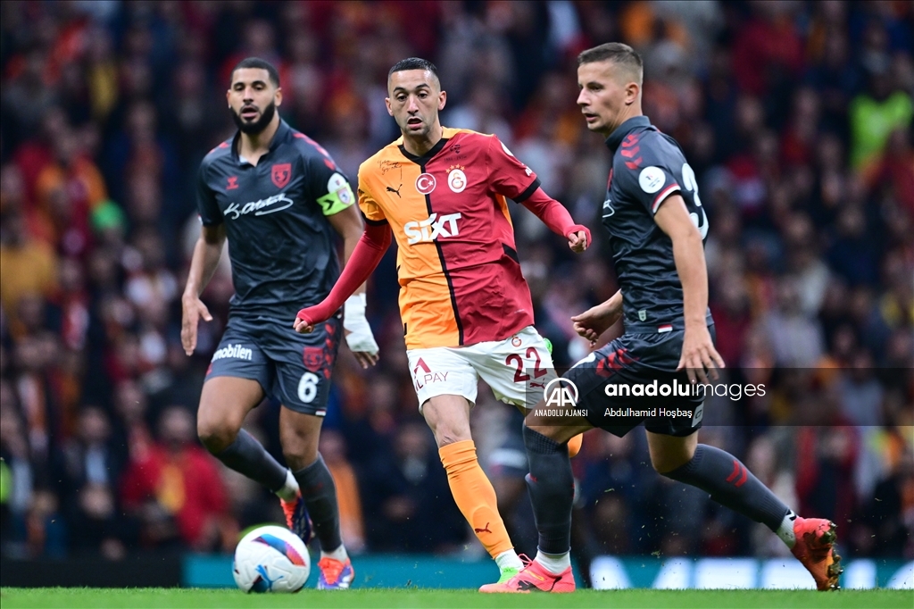 Bir pozisyonda Galatasaray oyuncusu Hakim Ziyech (22) Samsunspor oyuncusu Youssef Ait Bennasser (6) ile mücadele etti.Abdulhamid Hoşbaş