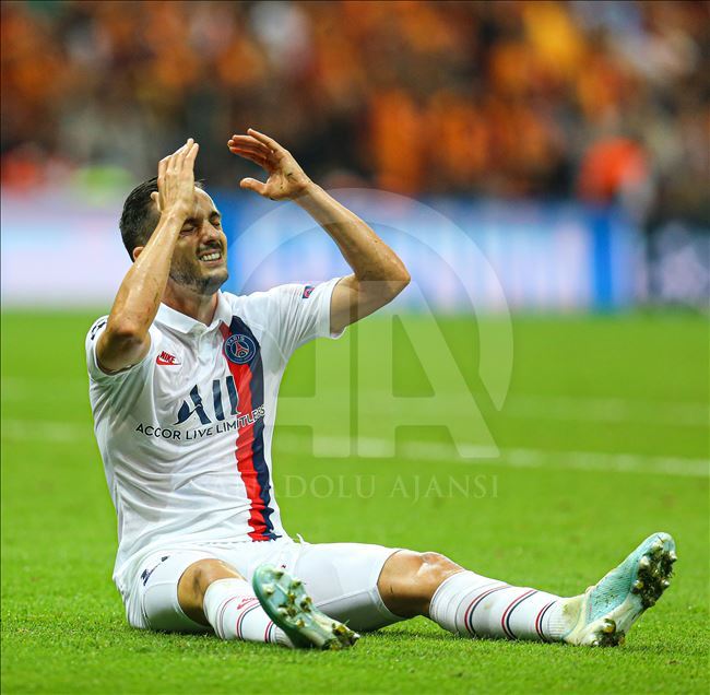 UEFA Şampiyonlar Ligi'nde Galatasaray, A Grubu'nda Fransa'nın Paris Saint-German ekibiyle Türk Telekom Stadı’nda karşılaştı. Bir pozisyonda Paris Saint-Germanlı futbolcu Pablo Sarabia üzüntü yaşadı. ( Salih Zeki Fazlıoğlu - Anadolu Ajansı )Salih Zeki Fazlıoğlu