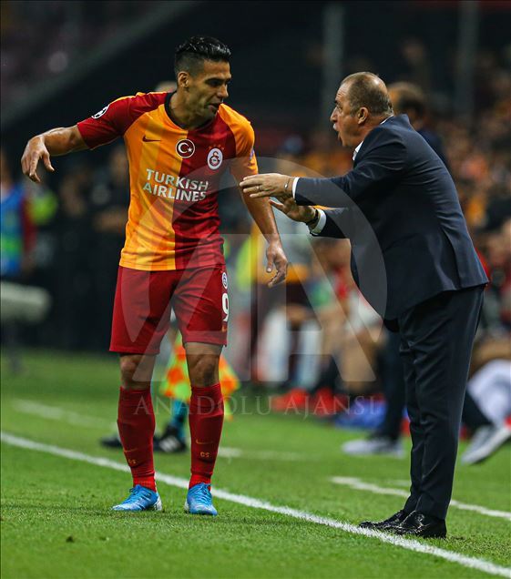 UEFA Şampiyonlar Ligi'nde Galatasaray, A Grubu'nda Fransa'nın Paris Saint-German ekibiyle Türk Telekom Stadı’nda karşılaştı. Galatasaray teknik direktörü Fatih Terim (sağda), oyuncusu Falcao'ya taktik verdi.