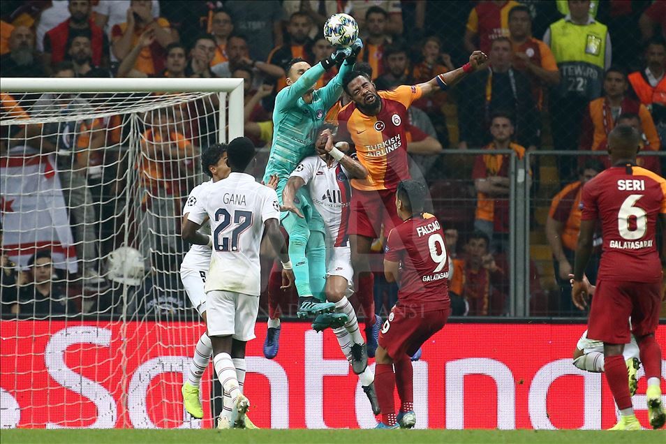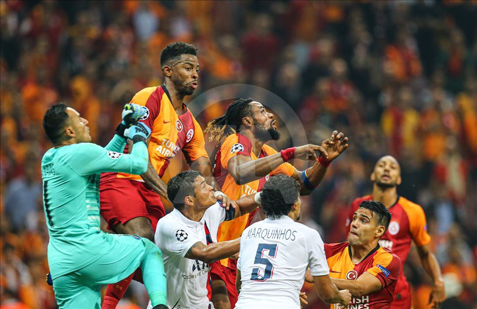 Galatasaray, UEFA Şampiyonlar Ligi A Grubu'nda, Fransa'nın Paris Saint-German takımı ile Türk Telekom Stadı'nda karşılaştı. Bir pozisyonda Galatasaraylı oyuncu Christian Luyindama (sağ 3), Paris Saint-German oyuncusu Keylor Navas (sağ 5) ile mücadele etti. ( Onur Çoban - Anadolu Ajansı )Onur Çoban