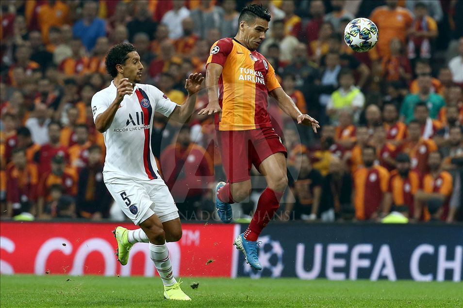 Galatasaray, UEFA Şampiyonlar Ligi A Grubu'nda, Fransa'nın Paris Saint-German ile Türk Telekom Stadı'nda karşılaştı. Bir pozisyonda Galatasaraylı oyuncu Falcao (9), Paris Saint-German oyuncusu Marquinhos (5) ile mücadele etti. ( Emrah Yorulmaz - Anadolu Ajansı )Emrah Yorulmaz