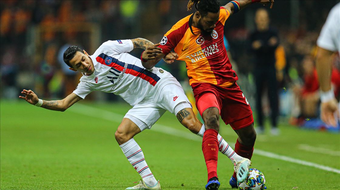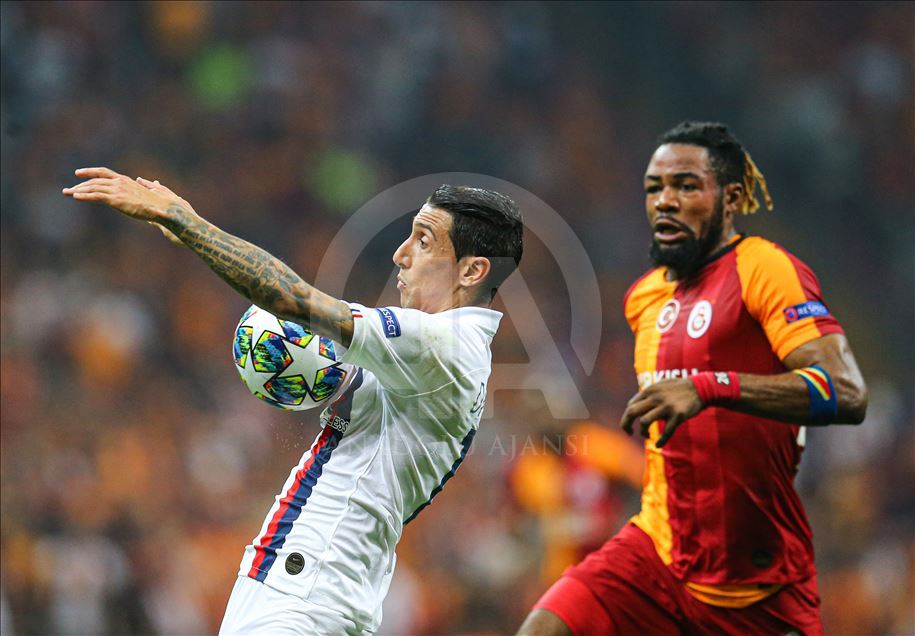 UEFA Şampiyonlar Ligi'nde Galatasaray, A Grubu'nda Fransa'nın Paris Saint-German ekibiyle Türk Telekom Stadı’nda karşılaştı. Bir pozisyonda Galatasaraylı oyuncu Luyindama (sağda) ile Paris Saint-Germanlı futbolcu Angel Di Maria (solda) mücadele etti.