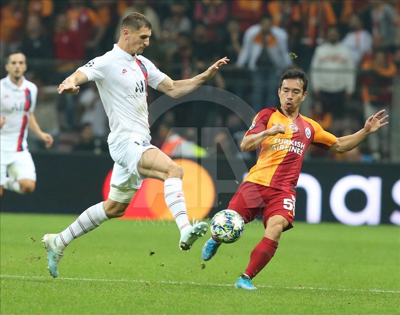 Galatasaray, UEFA Şampiyonlar Ligi A Grubu'nda, Fransa'nın Paris Saint-German takımı ile Türk Telekom Stadı'nda karşılaştı. Bir pozisyonda Galatasaraylı oyuncu Yuto Nagatomo (55)), Paris Saint-German oyuncusu Thomas Meunier (12) ile mücadele etti. ( Emrah Yorulmaz - Anadolu Ajansı )Emrah Yorulmaz