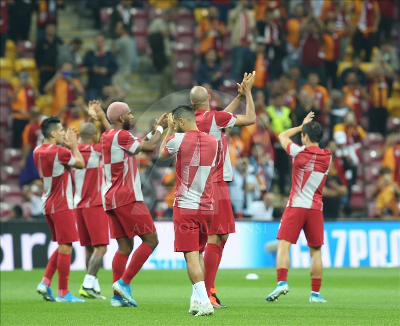 Galatasaraylı futbolcular, UEFA Şampiyonlar Ligi A Grubu'nda, Galatasaray ile Paris Saint-German arasında Türk Telekom Stadı'nda oynanacak karşılaşma öncesi taraftarı selamladı. ( Emrah Yorulmaz - Anadolu Ajansı )Emrah Yorulmaz