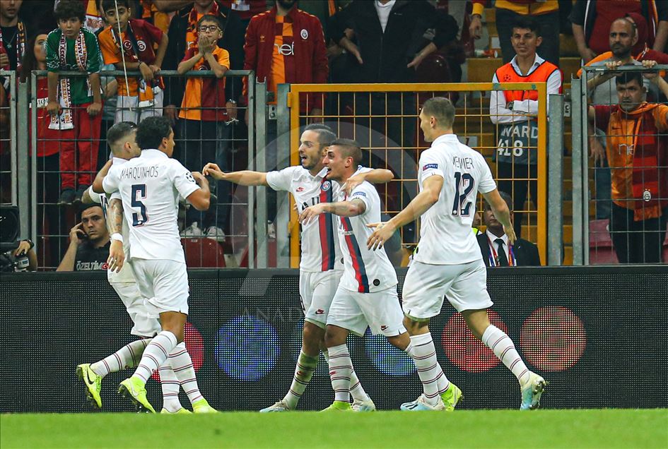 UEFA Şampiyonlar Ligi'nde Galatasaray, A Grubu'nda Fransa'nın Paris Saint-German ekibiyle Türk Telekom Stadı’nda karşılaştı. Paris Saint-Germanlı oyuncular atılan golün ardından sevinç yaşadı.