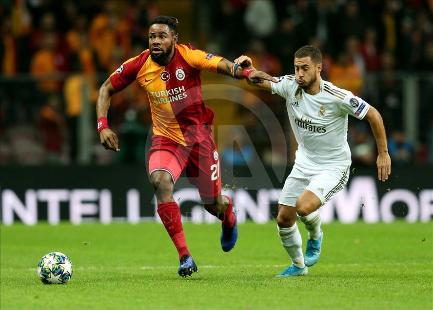 Galatasaray, UEFA Şampiyonlar Ligi A Grubu 3. hafta maçında İspanya temsilcisi Real Madrid ile Türk Telekom Stadı'nda karşılaştı. Galatasaraylı oyuncu Christian Luyindama (solda) , Real Madridli futbolcu Eden Hazard (sağda) ile mücadele etti.