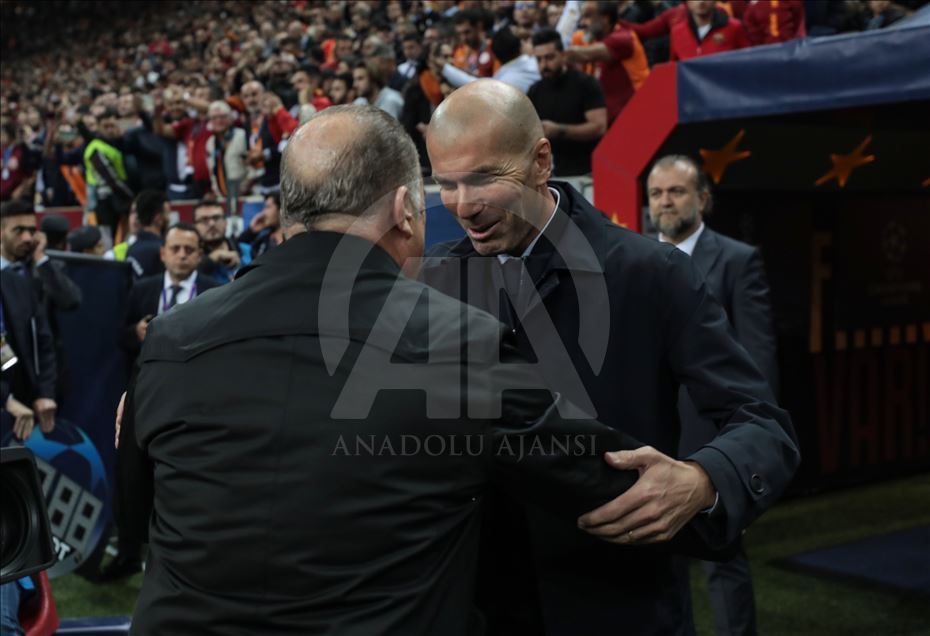 Galatasaray, UEFA Şampiyonlar Ligi A Grubu 3. hafta maçında İspanya temsilcisi Real Madrid ile Türk Telekom Stadı'nda karşılaştı. Galatasaray teknik direktörü Fatih Terim (solda) ve Real Madrid teknik direktörü Zinedine Zidane (sağda) karşılaşma öncesi selamlaştı. ( Şebnem Coşkun - Anadolu Ajansı )Şebnem Coşkun