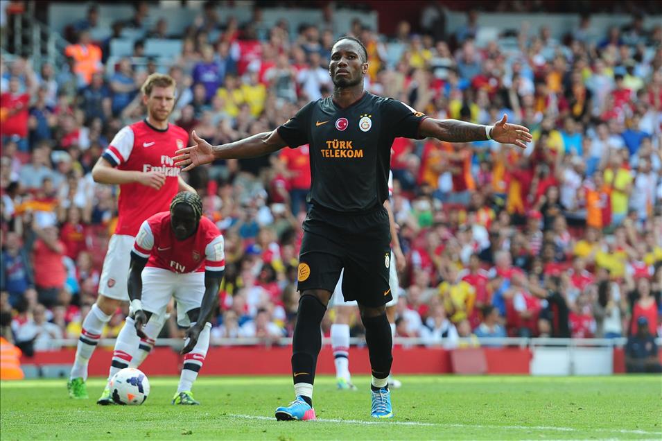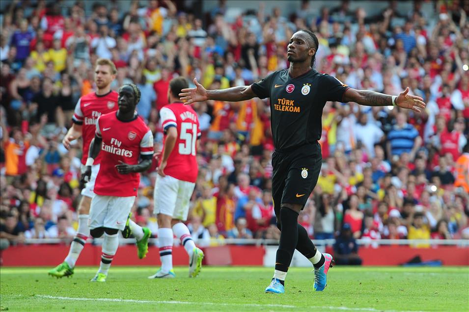 LONDON, ENGLAND - AUGUST 04: Didier Drogba of Galatasaray celebrates his goal during the Emirates Cup match between Arsenal and Galatasaray at The Emirates Stadium on August 04, 2013 in London, England (Photo by Alex Broadway)