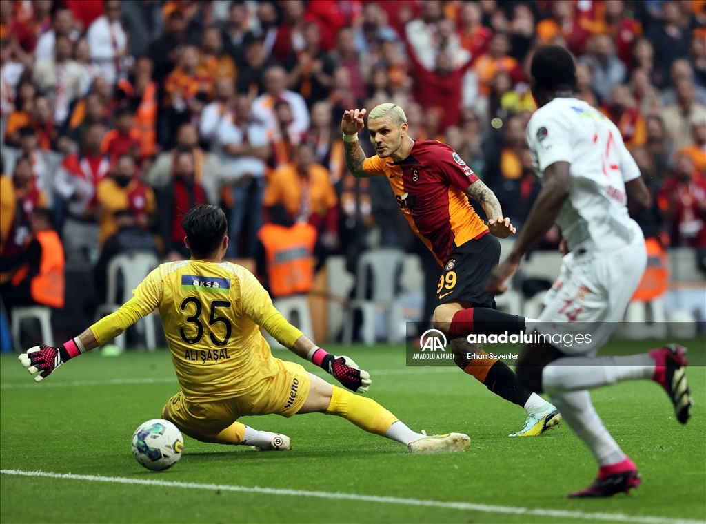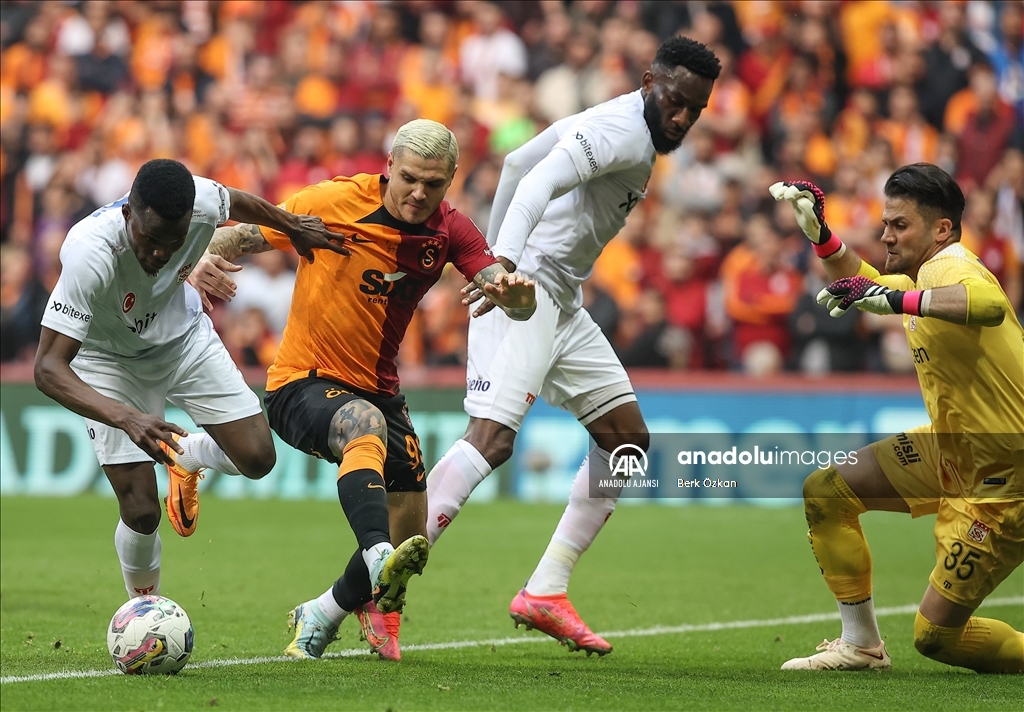 Spor Toto Süper Lig'in 35. Haftasında Galatasaray ile Demir Grup Sivasspor takımları Nef Stadı'nda karşılaştı. Bir pozisyonda Galatasaraylı oyuncu Mauro İcardi (99) ile Demir Grup Sivasspor kalecisi Ali Şaşal Vural (35) mücadele etti. ( Erhan Sevenler - Anadolu Ajansı )Erhan Sevenler