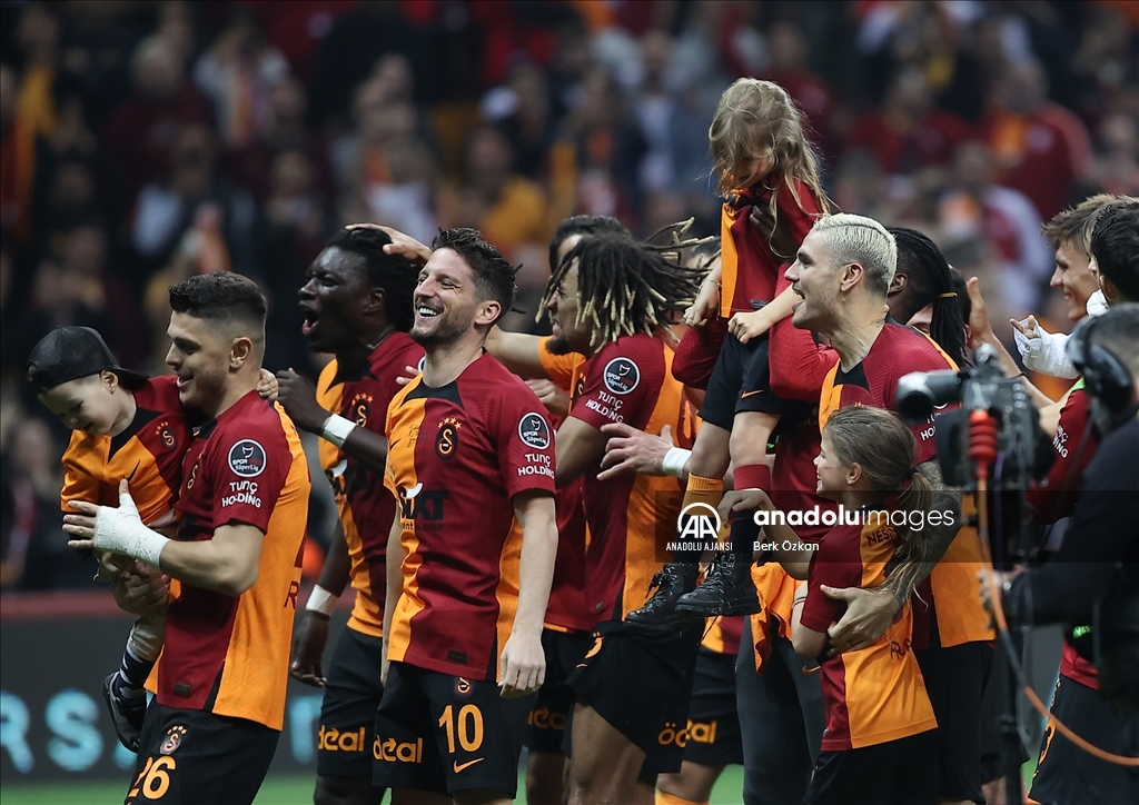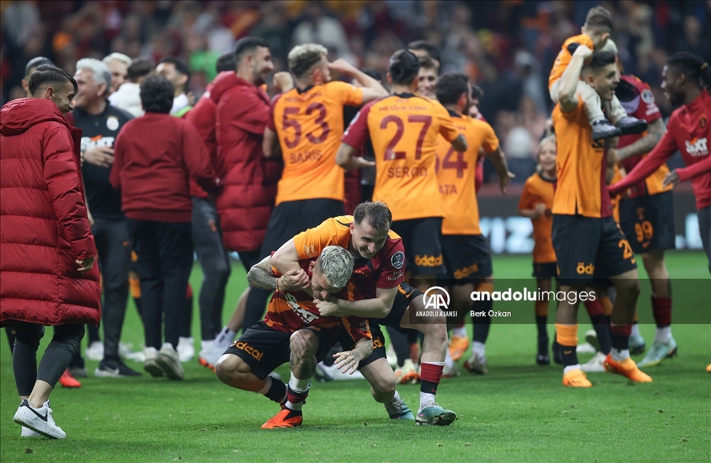 Spor Toto Süper Lig’in 35. haftasında Galatasaray ile Demir Grup Sivasspor takımları Nef Stadı’nda karşılaştı. Galatasaraylı futbolcular maç sonunda sevinç yaşadı. ( Berk Özkan - Anadolu Ajansı )Berk Özkan