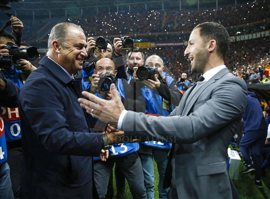 UEFA Şampiyonlar Ligi D Grubu'nda Galatasaray, Türk Telekom Stadı'nda Almanya'nın Schalke 04 takımıyla karşılaştı. Karşılaşma öncesi Galatasaray teknik direktörü Fatih Terim (solda) ile Schalke 04 teknik direktörü Domenico Tedesco (sağda) birbirlerine başarı diledi. ( Salih Zeki Fazlıoğlu - Anadolu Ajansı )Salih Zeki Fazlıoğlu
