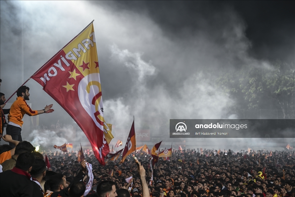 Spor Toto Süper Lig'in 36. haftasında deplasmanda MKE Ankaragücü'nü 4-1 mağlup eden Galatasaray, bitime 2 hafta kala 23.şampiyonluğunu ilan etti. Florya'da toplanan Galatasaraylı taraftarlar şampiyonluk sevinci yaşadı. ( Elif Öztürk Özgöncü - Anadolu Ajansı )