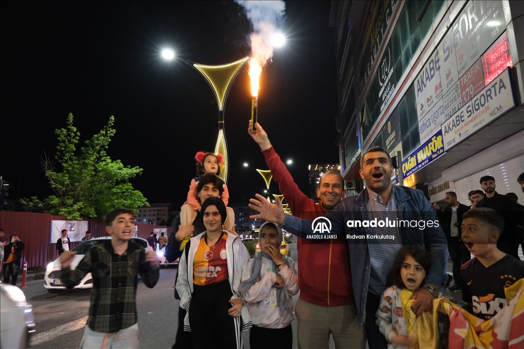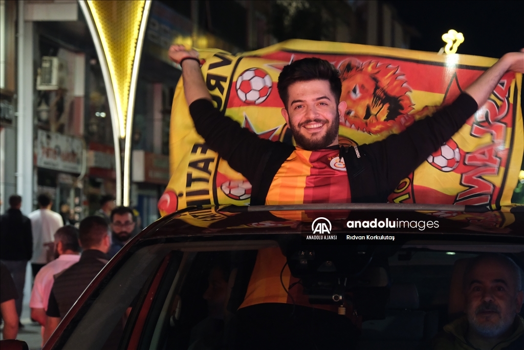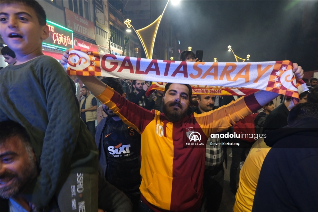 Spor Toto Süper Lig'in 36. haftasında deplasmanda MKE Ankaragücü'nü 4-1 mağlup eden Galatasaray, bitime 2 hafta kala 23. şampiyonluğunu ilan etti. Bingöl kent merkezinde toplanan Galatasaraylı taraftarlar, şampiyonluk sevinci yaşadı. ( Rıdvan Korkulutaş - Anadolu Ajansı )Rıdvan Korkulutaş