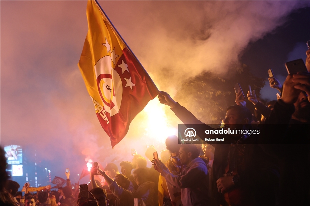 Galatasaraylı taraftarlar, şampiyonluğu kutluyor
