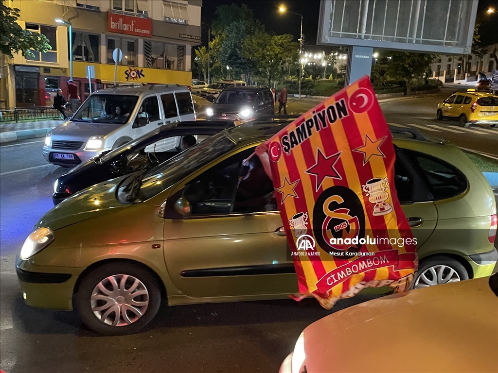 Spor Toto Süper Lig'in 36. haftasında deplasmanda MKE Ankaragücü'nü 4-1 mağlup eden Galatasaray, bitime 2 hafta kala 23. şampiyonluğunu ilan etti. Tekirdağ kent merkezinde toplanan Galatasaraylı taraftarlar, şampiyonluk sevinci yaşadı. ( Mesut Karaduman - Anadolu Ajansı )Mesut Karaduman