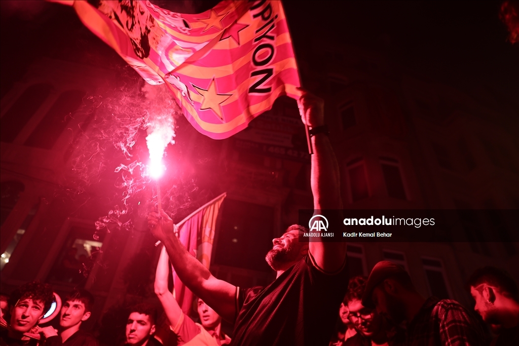 Galatasaraylı taraftarlar, Spor Toto Süper Lig'de mutlu sona ulaşan takımlarının şampiyonluğunu kutluyor.