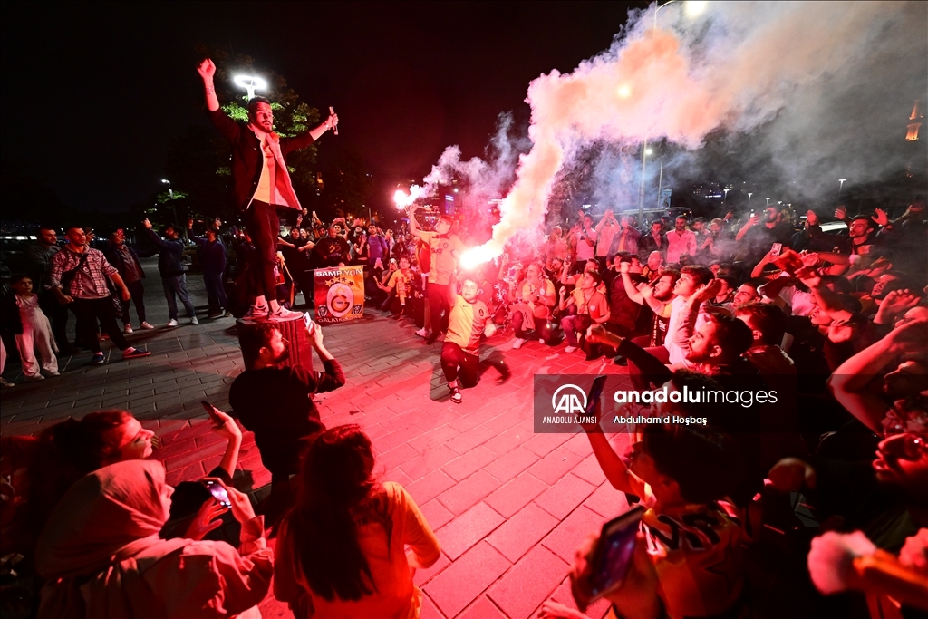 Spor Toto Süper Lig'in 36. haftasında deplasmanda MKE Ankaragücü'nü 4-1 mağlup eden Galatasaray, bitime 2 hafta kala 23. şampiyonluğunu ilan etti. Başkent Ankara'daki Kızılay Meydanı'nda toplanan Galatasaraylı taraftarlar, şampiyonluk sevinci yaşadı. ( Hakan Nural - Anadolu Ajansı )Hakan Nural