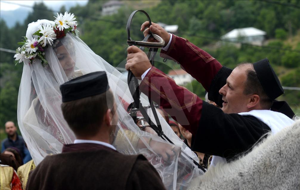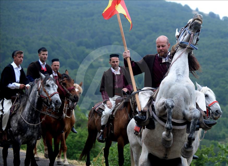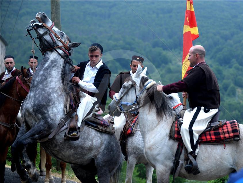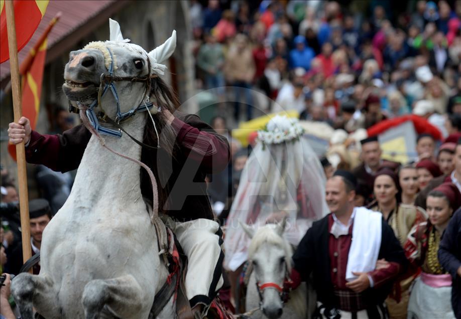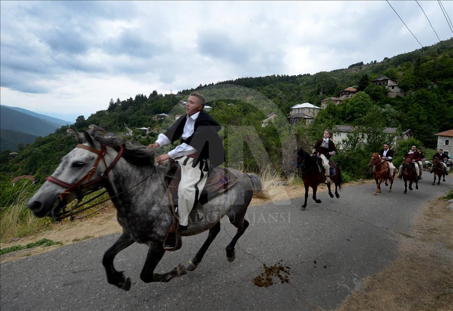 Makedonya'da bulunan Galicnik köyünde, köy düğünü festivali yapıldı. Düğünde geleneksel kıyafetler giyen Makedonyalılar, atlarla düğün merasimine katıldılar.